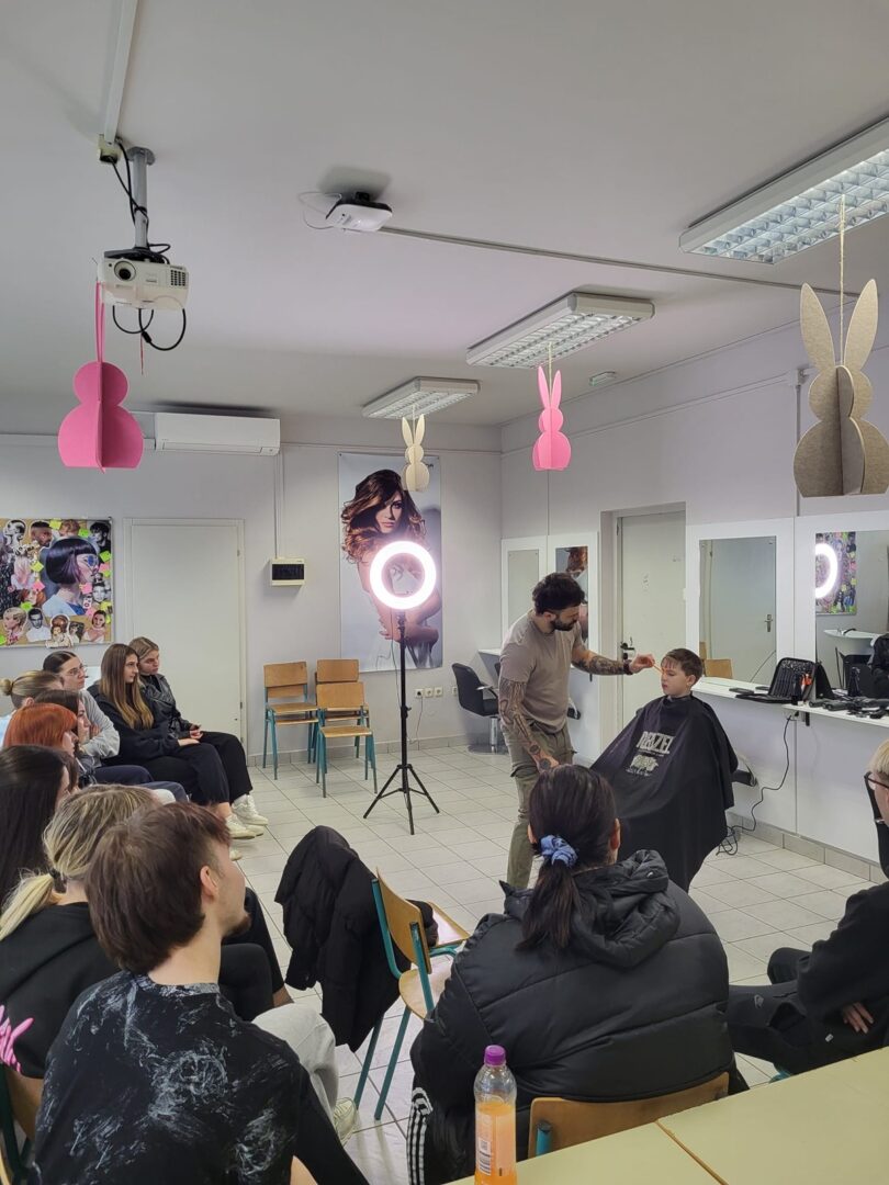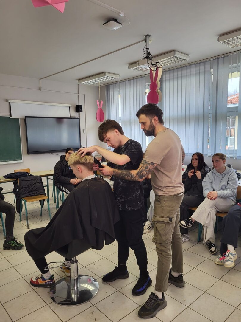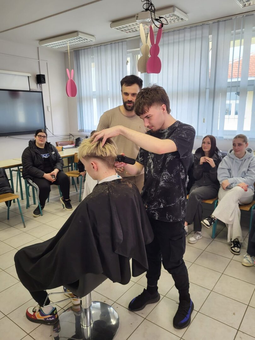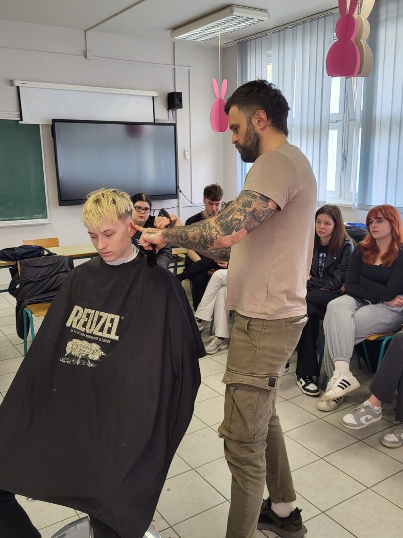 Marko Ćaćić, ujedno i bivši učenik naše škole, danas je jedno od poznatih imena u svijetu frizerstva. Svojim radom i talentom stekao je ugled u struci te se profilirao kao vrhunski edukator specijaliziran za barbering. Tijekom edukacije učenici su imali priliku upoznati najnovije trendove u svijetu muških frizura te usavršiti svoje znanje i vještine uz stručno vodstvo i savjete iz prve ruke.