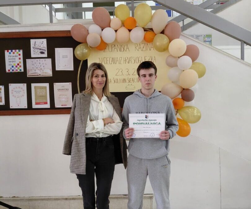 Četvero naših učenika sudjelovalo je 20. ožujka 2026. na županijskom Natjecanju u poznavanju hrvatskoga jezika. U Srednjoj školi Ivan Švear u Ivanić Gradu svoje jezično znanje pokazali su: Lana Šimunec, 1.ek (mentorica nastavnica Paula Surjan), Eva Milićević, 1.ogb (mentorica nastavnica prof. Biljana Šoltes), Marija Božanović, 3.ogb (mentorica nastavnica Marina Mihaljević) i Mihael Stuckle Ostojić, 4.oga (mentorica nastavnica Ana Pandžić).