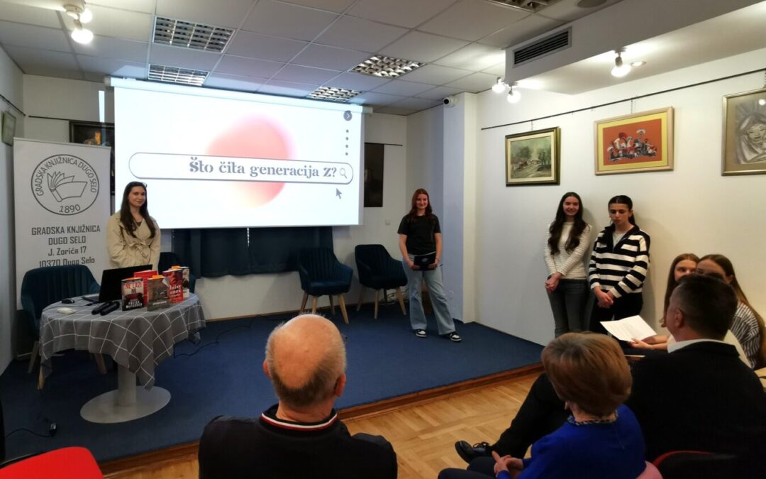 Naši su učenici pod mentorstvom nastavnica Marine Antolković i Biljane Šoltes te knjižničarke Nikoline Ćorković predstavili interaktivnom prezentacijom „Što čita Generacija Z“ te čitali ulomke iz dragih knjiga. Našli su se i domaći i strani autori u malom istraživanju o tome što čita generacija Z. Među njima ističe se hrvatska spisateljica Rosie Kugli (Hod po rubu i Dvostruka igra – lažni profil) te strani autori poput Coleen Hoover (Okoštalo srce), Jo Nesbø (Kuća noći) i Karen M. McManus (Znate što ste učinili).