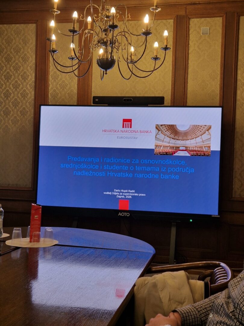 Posjet maturanata ekonomskog smjera Hrvatskoj narodnoj banci, 11. veljače 2026., u organizaciji nastavnice Klaudije Boščić te uz pratnju nastavnice Sare Leonie Martić, bio je izuzetno zanimljivo i poučno iskustvo. Tijekom boravka imali smo priliku sudjelovati na predavanju na kojem smo saznali više o ulozi i važnosti Hrvatske narodne banke u financijskom sustavu Republike Hrvatske.