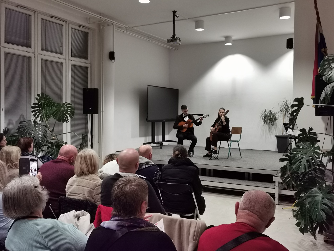 Vokalni ansambl Duga izražajno i harmonično je izveo poznate skladbe poput „Čuješ li me je ‘l ti drago“, „Reci mi tiho, tiho“ i „Sklopi oči“, Duo Cordial s izvedbama „Besame Mucho“, „Žute dunje“ i „Ti si mi u krvi“ oduševio je instrumentalnom interpretacijom na tamburi i klasičnoj gitari, a posebno je publiku razdragao gost iznenađenja Marcelin Talla, pjevač iz dalekog Kameruna koji je otpjevao „Parlez-moi d’amour“ i „O sole mio“. Program je zaključen pjesmom „Najdraže moje“, čime je koncert zaokružen u svečanom i emotivnom ozračju.